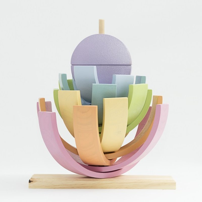 Su madera, imperfecta y natural, les da información sensorial muy valiosa. Sus piezas les ayudan a diferenciar formas y colores. Manipulándolo ganan destreza y coordinación. A través de él van comprendiendo conceptos complejos como el equilibrio, la simetría y la resistencia. Les abre la puerta de par en par al juego simbólico, a construir escenarios e imitar situaciones de la vida real.